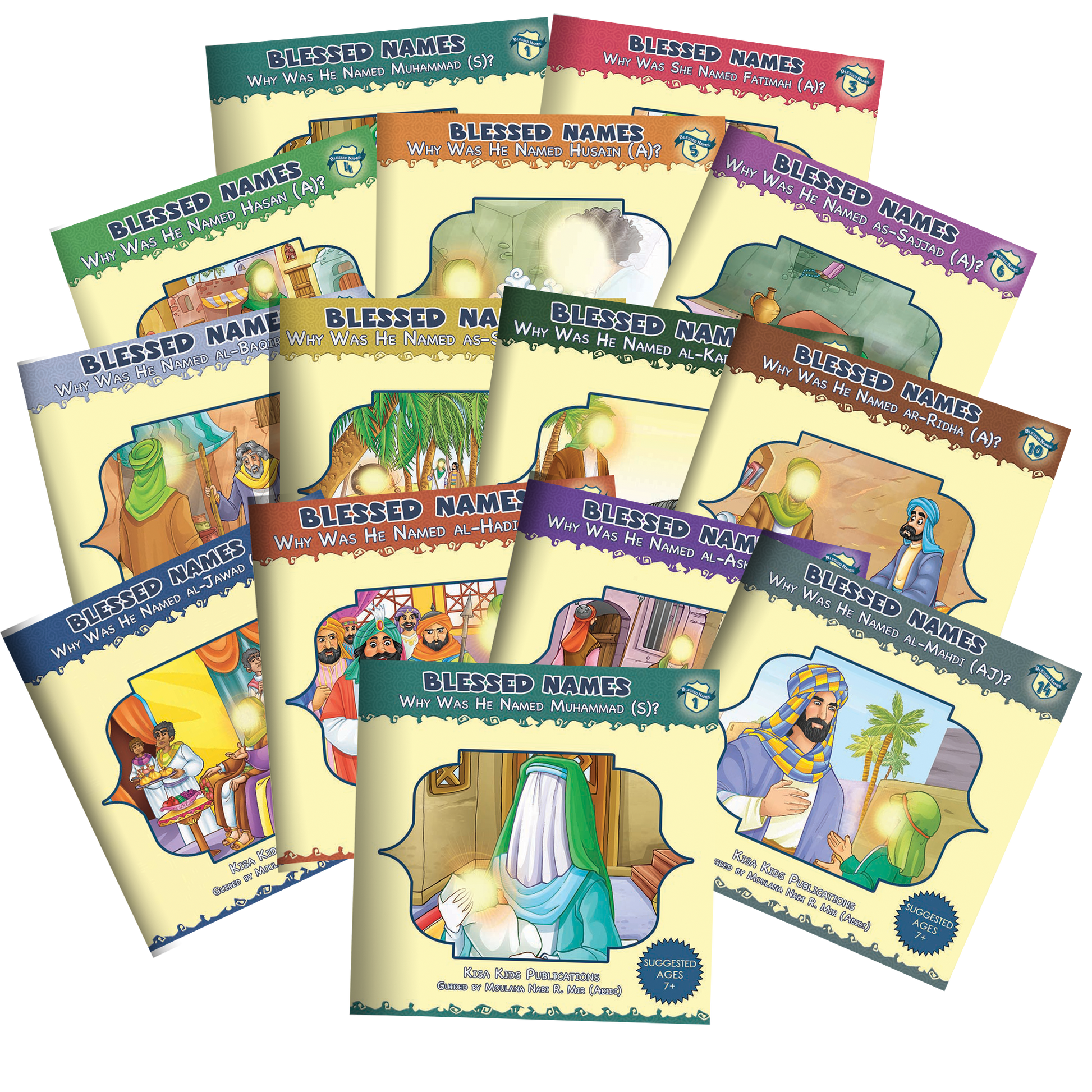 Names — we all have one, and many of us even share ours with our beloved role models, the 14 Maʿṣūmīn (ʿa). But have you ever wondered what your name means? What about the names of the 14 Maʿṣūmīn (ʿa)? Blessed Names is a series of 14 books that reveals the secrets behind the heavenly names of the 14 Maʿṣūmīn (ʿa). Through 14 descriptive stories, you can learn what each of their names and titles mean and why they became famous by these titles!